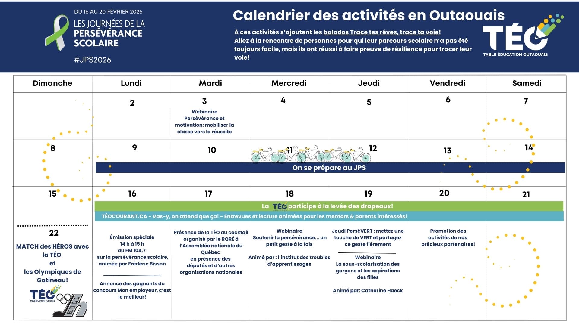 Les Journées de la persévérance scolaire (JPS) 2026 seront célébrer du 16 au 20 février sous le thème « La persévérance, ça mène loin ».